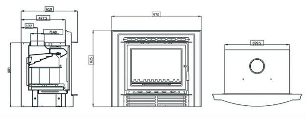 Material: oțel carbon, ușă și cadru din fontă, sticlă ceramică (marca NEG sau Schott), vopsea rezistentă la temperaturi ridicate (marca Forest)